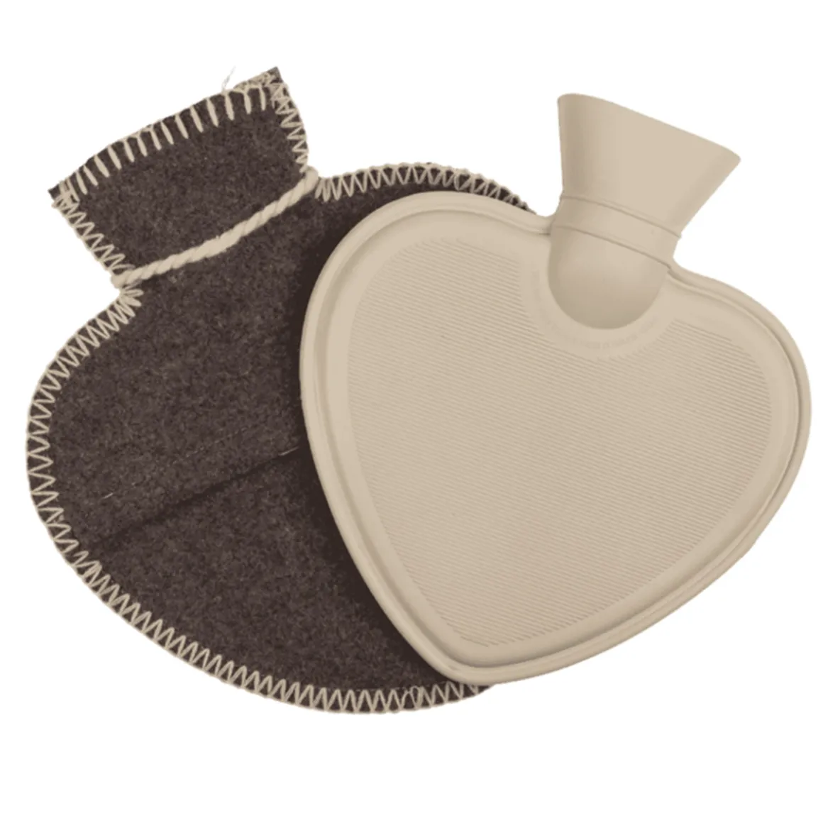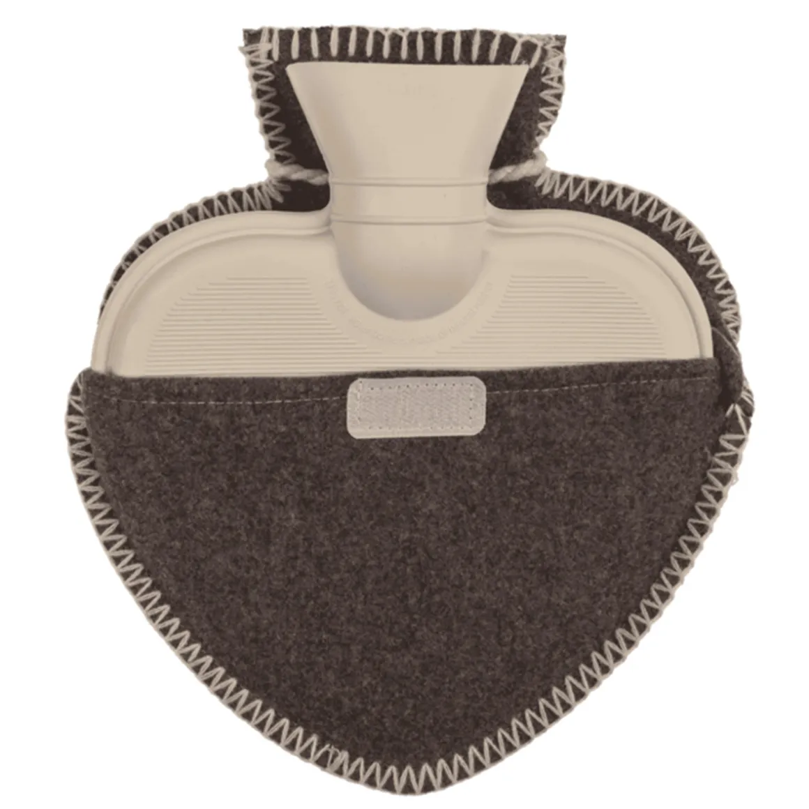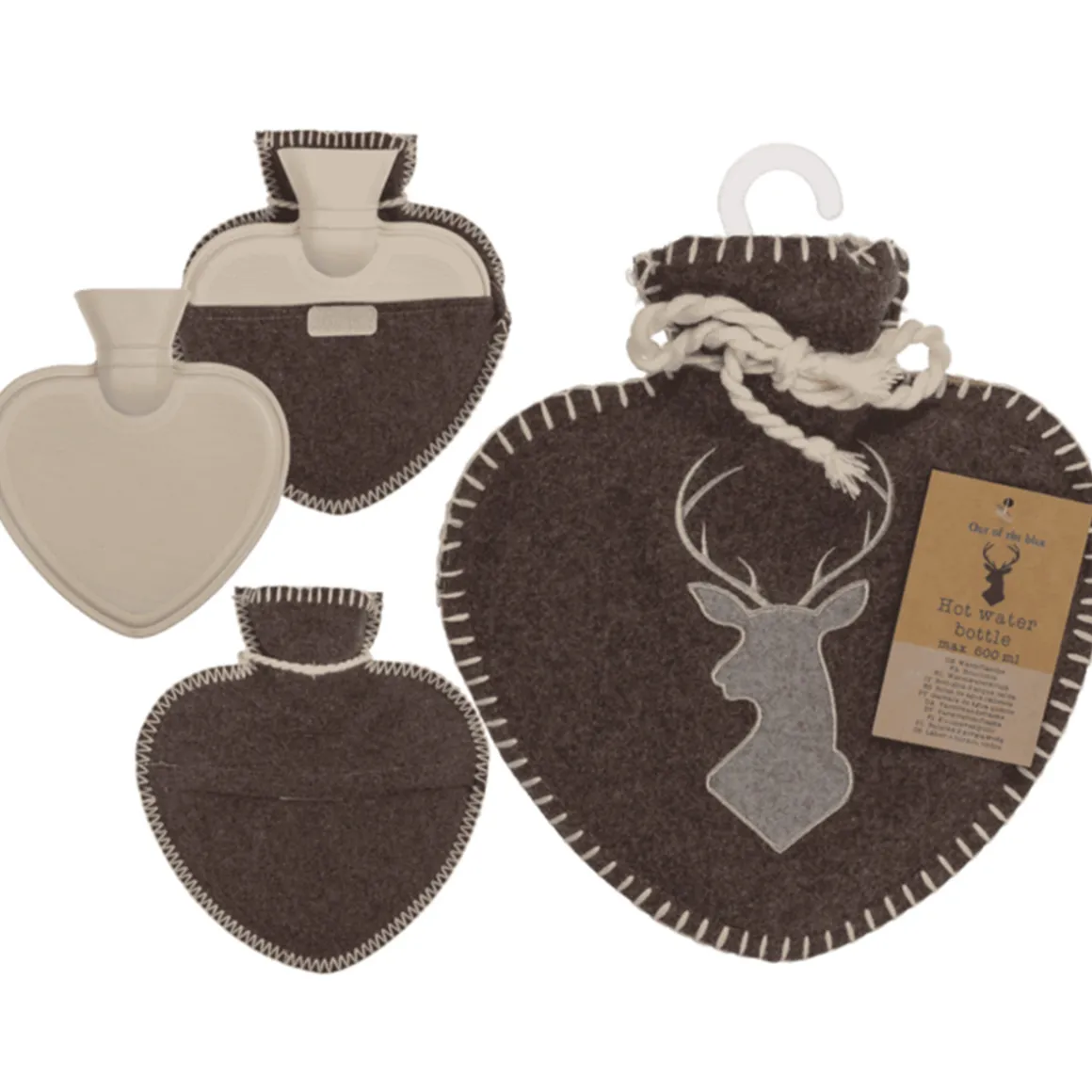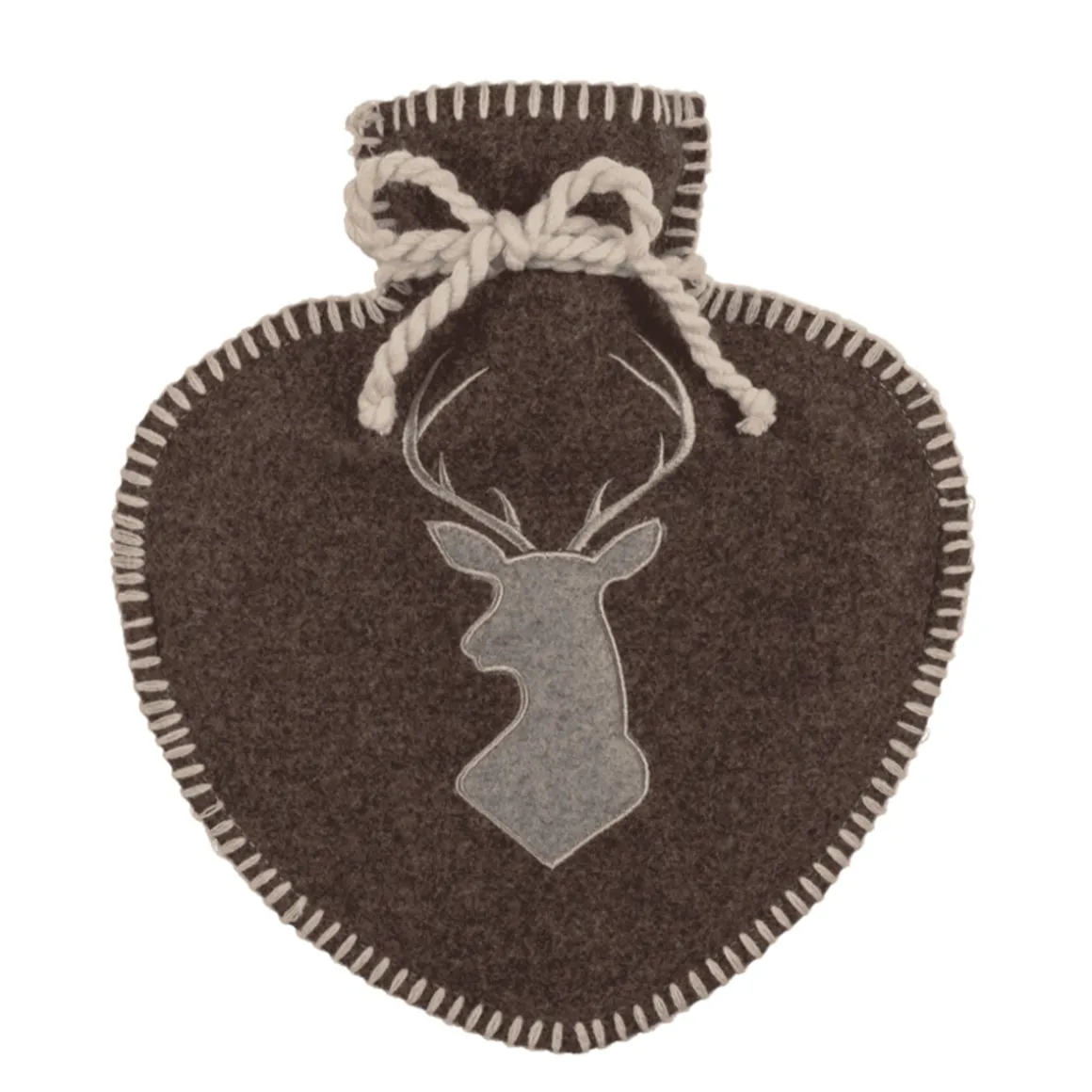 Wärmflasche Landhaus Hirsch, Herzform, Filzbezug mit Hirschmotiv und Kordel, braun-grau