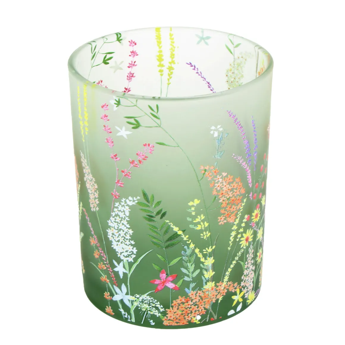 Windlicht Blumenwiese, satiniertes Glas-Windlicht grün, 10x12cm
