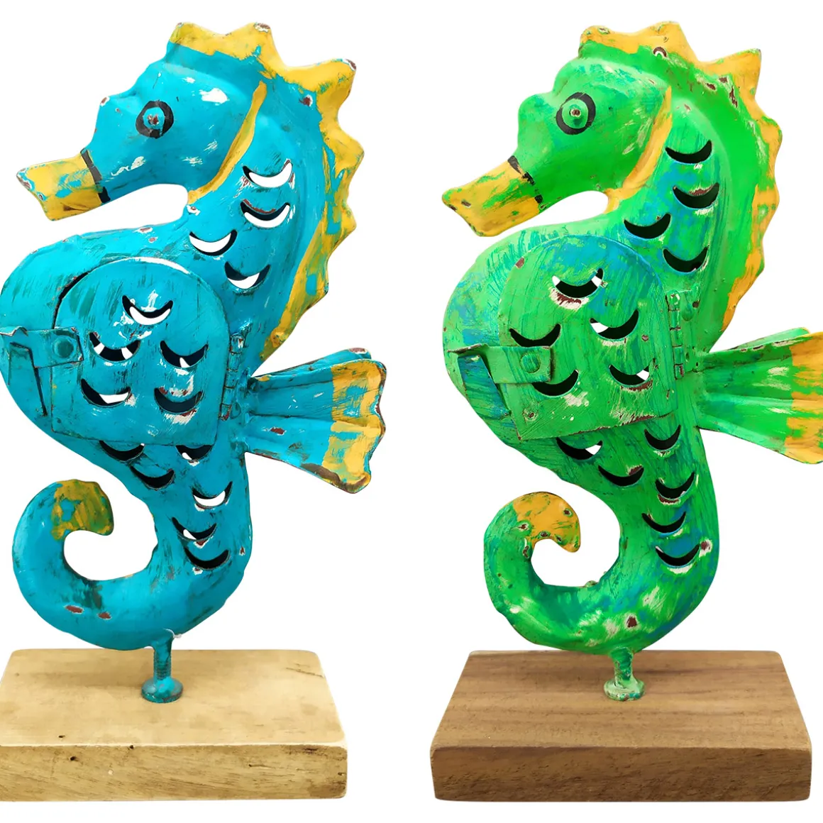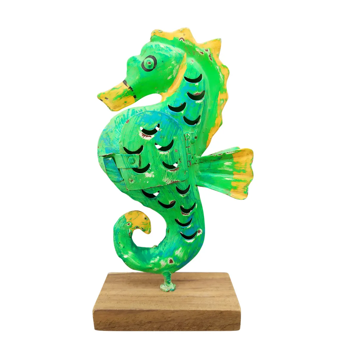 Windlicht Seepferdchen grün, Seepferdchen mit kleinem Türchen, 24cm, Metall