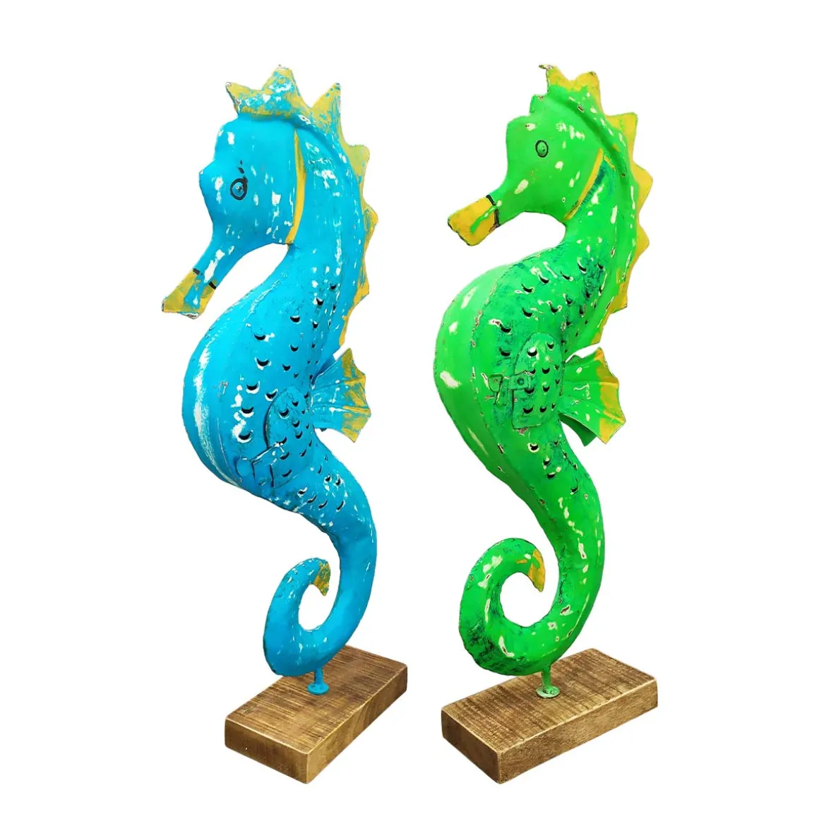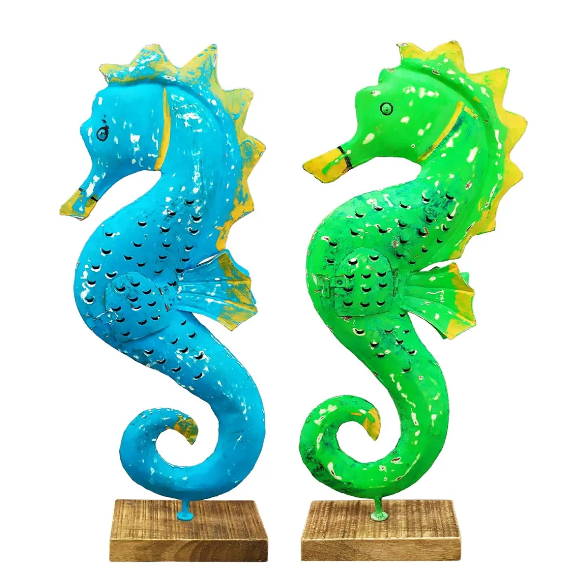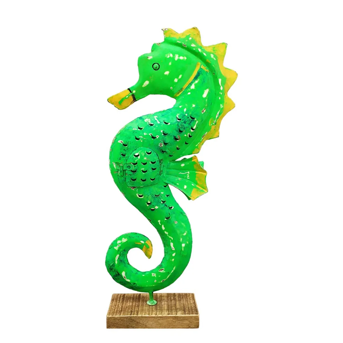Windlicht Seepferdchen grün, Seepferdchen mit kleinem Türchen, 65cm, Metall