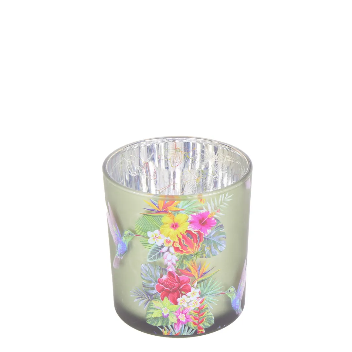 Windlicht Tropical, satiniertes Glas-Windlicht mit Kolibri, 7x8cm