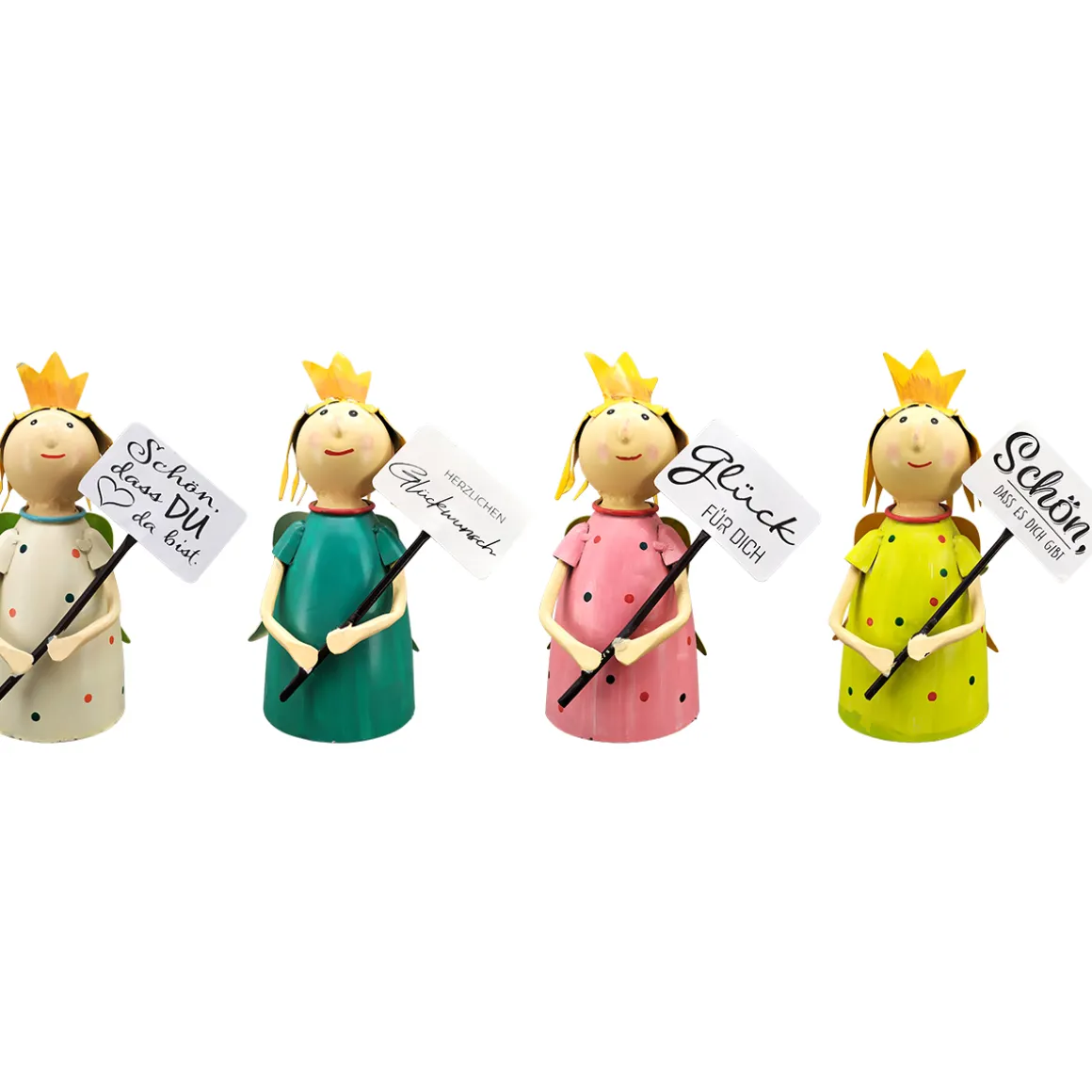 Zaunhocker Engel Schutzengel, Metallengel mit Krone und Schild: Herzlichen Glückwunsch, 24cm